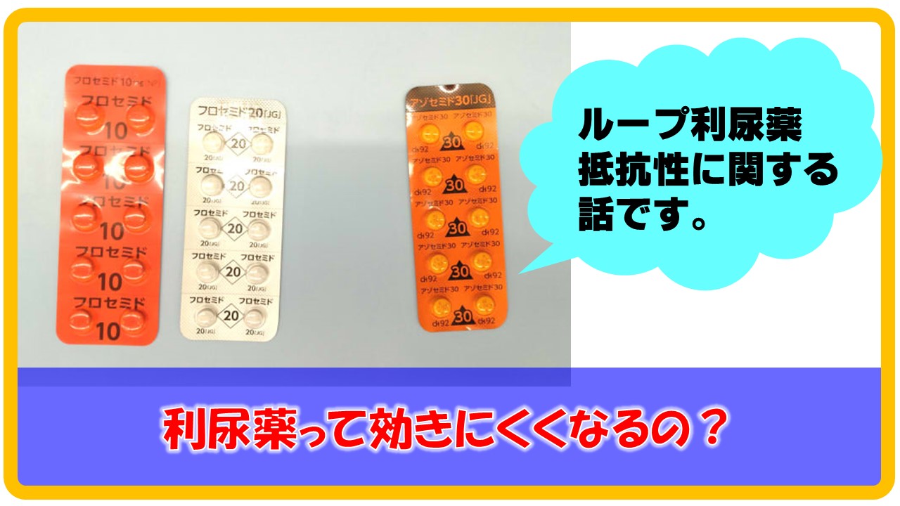 ちなみに、ループ利尿薬抵抗性に対して、遠位尿細管のNa再吸収に対して働きかけるサイアザイド系利尿薬を併用することで利尿を促すことが可能である。