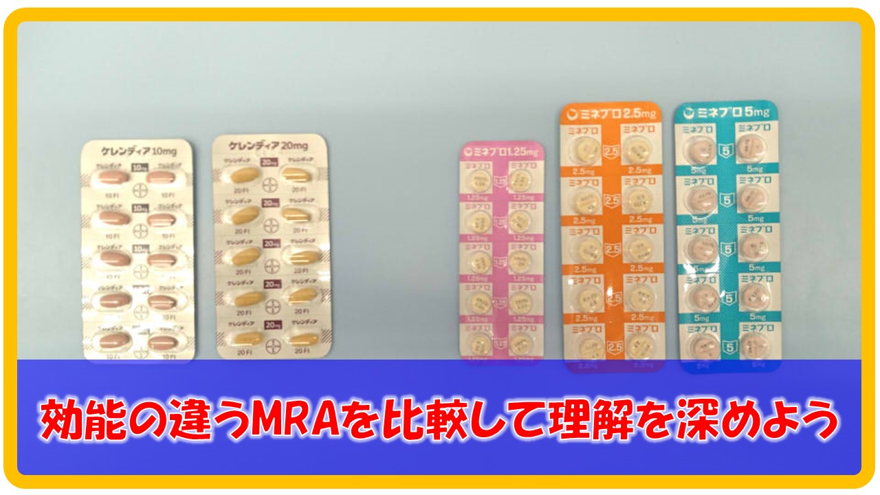 薬理作用は、どちらも「アルドステロンがミネラルコルチコイド受容体に結合することを阻害し、MRの活性化を抑制」します。